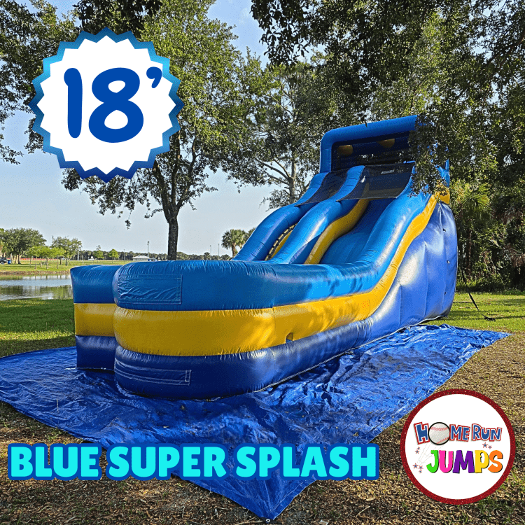 18' Blue Super SplashBounce & Slide Package:18' Blue Super Splash102577521_2598651_25341731100 Prepare for the ride of a lifetime with our towering Blue Super Splash! This 18' megalith can be used wet or dry by your thrill seeker all year long. Don't be fooled by the calming blues and yellows—our bubble bump slide takes the experience to a whole other level!